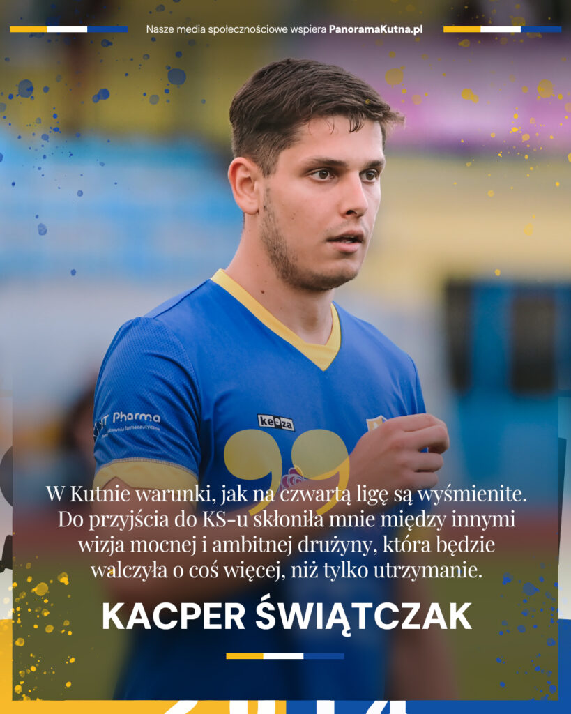 Kolejnym z nowych zawodników, którzy przed sezonem wzmocnili KS Kutno jest Kacper Świątczak. Zawodnik, który w przeszłości był m.in. w zespole Ruchu Chorzów czy Lechii Tomasz Mazowiecki, ma wzmocnić kutnowską defensywę.