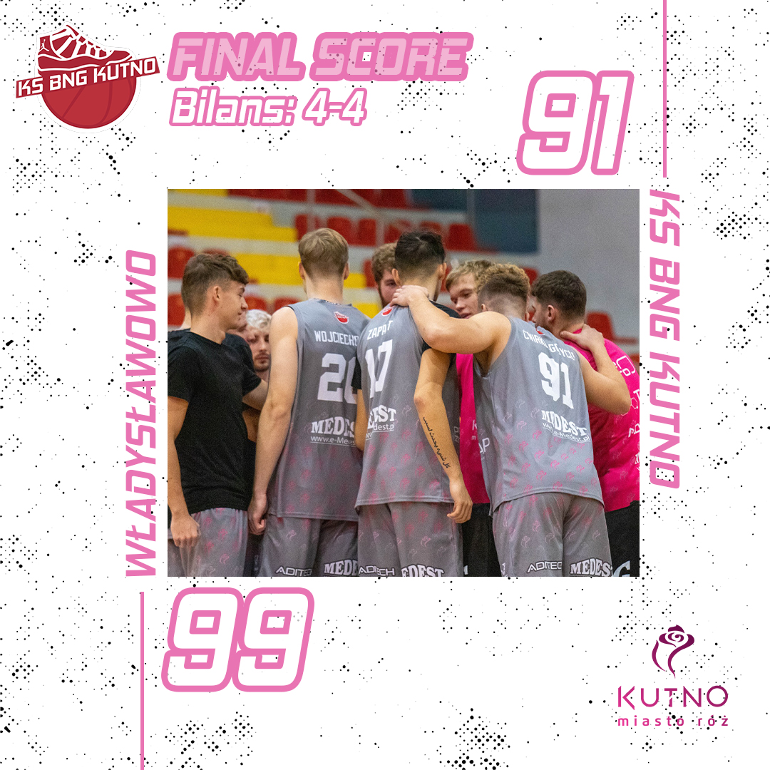 We wczorajszym meczu 8. kolejki 2. Ligi Mężczyzn, mimo walki do samego końca, ulegliśmy drużynie SMS PZKosz Władysławowo 91:99.